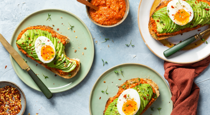 Toast met Muhammara, avocado en ei