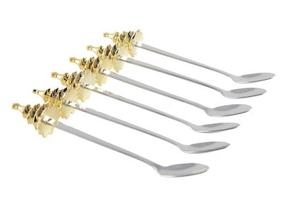 Set van 6 gouden kerstboomlepels
