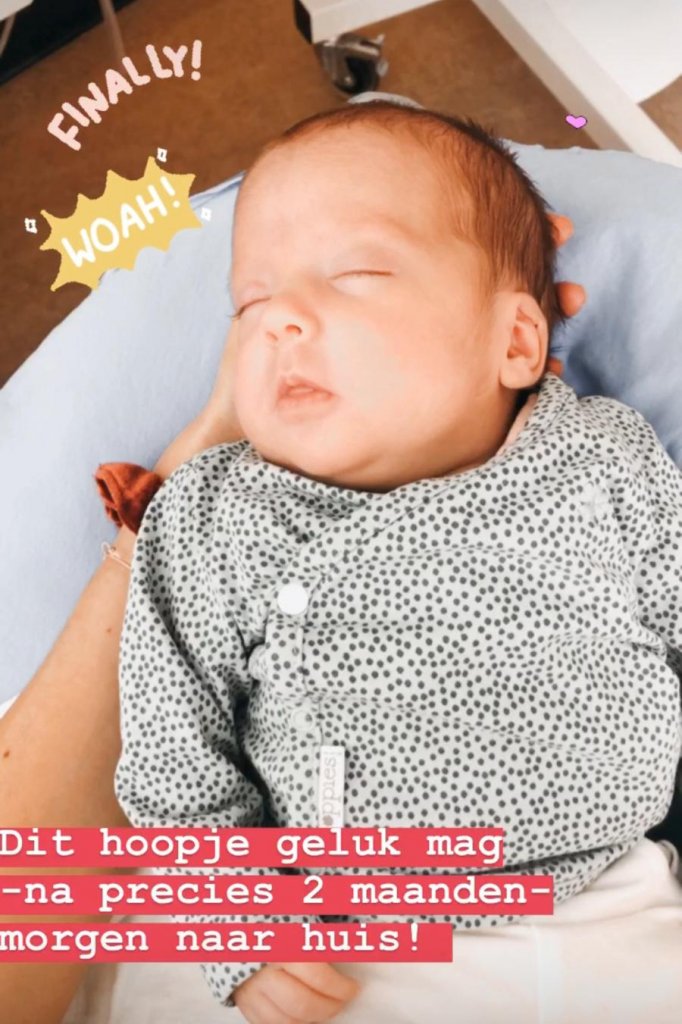 “Dit hoopje geluk mag, na precies twee maanden, morgen naar huis”, schrijft Stephanie bij een foto van haar dochter. Vida werd op 18 april met 28 weken, drie maanden te vroeg, geboren. Sindsdien moest het piepkleine meisje in het ziekenhuis blijven. “Natuurlijk is het lastig om haar daar iedere keer achter te laten en met lege handen thuis te komen, maar haar vechtlust en kracht die tot nu toe voor alleen maar positieve berichten zorgen, maken ons zo blij en dankbaar”, vertelde Mark eerder.