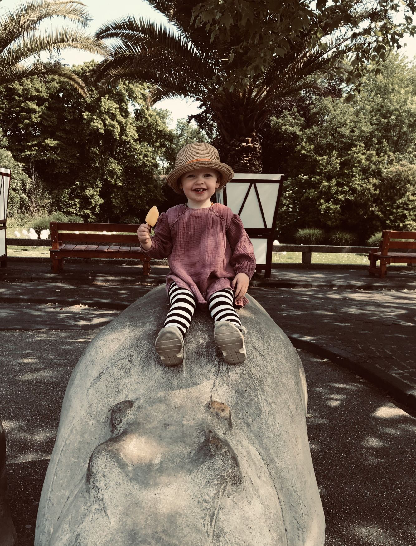 Zo stormde er vorig jaar een woedende moeder op mij af omdat mijn (toen nog) dreumes haar kleuter had gebeten in de glijbaan. De moeder vroeg zich af hoe dit in hemelsnaam kon gebeuren en waarom ik dit niet had voorkomen. En natuurlijk schrok ik me rot van die uiting van apenliefde. Maar buiten het feit dat mijn lichaam niet gemaakt is voor een kinderglijbaan, ga ik mijn dochter niet continu achtervolgen als zij aan het spelen is. Dat is dus niet helemaal sociaal geaccepteerd en ik word dan ook met regelmaat door ouders bekeken of aangesproken als Soof zelfstandig de speeltuin rondstruint. “Ze is daar hoor”, of “Ze klimt op de schommel”. “Ja ik zie het, dank je”, zeg ik dan. Om vervolgens te zien hoe ouders met opgetrokken wenkbrauwen weer verder gaan met het regisseren van hun eigen kroost.