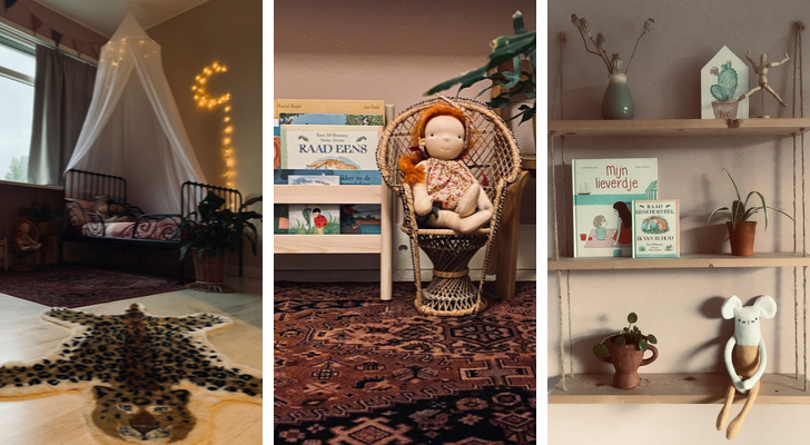 Tot rond haar tweede verjaardag. Want zoals het een echte peuter betaamt wilde Soof ineens “zelluf slapen”. En omdat we graag haar tempo volgen, besloten we meteen aan de slag te gaan met project ‘eigen kamer’. We gingen samen naar de bouwmarkt, verfden de muren in haar lievelingskleur roze en kochten een ‘prinsessenbed’. We maakten een lichtjestent, een maanlamp en sorteerden haar lievelingsboekjes in een rekje waar ze zelf makkelijk bij kan. En zo werd dat kale kamertje naast ons ineens een gezellige en bovenal echte Soof kamer!