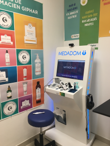 Pas de problème… want ook qua techniek lopen de Fransen voorop. In onze apotheek, 3 minuten van Villa Verte, staat nu een Medadom. Dat is een zuil vol apparaten met een scherm. Je meld je bij de apotheek (die hier ook ’s avonds en op zaterdag open is), steekt je carte vitale (een soort ziekenfondspas) in het apparaat en na een wachttijd van 20 minuten kwebbel je live met een huisarts die dienst heeft. Deze dokter geeft instructies om indien nodig al die apparaten te gebruiken. Er is een otoscoop (oren), stethoscoop (hart), dermatoscoop (huid), saturometer (zuurstof), een bloeddrukmeter en andere snufjes. Zo’n teleconsult wijst in de meeste gevallen uit wat er aan de hand is. En hop, de arts schrijft een recept uit dat uit de printer rolt die aan de andere kant van de muur staat. Meteen zet de apotheker alles voor je klaar. Is er toch iets ernstigs aan de hand, dan regelt de arts onmiddellijk een afspraak bij de specialist in het dichtstbijzijnde ziekenhuis. Hoe fantastisch is dat?